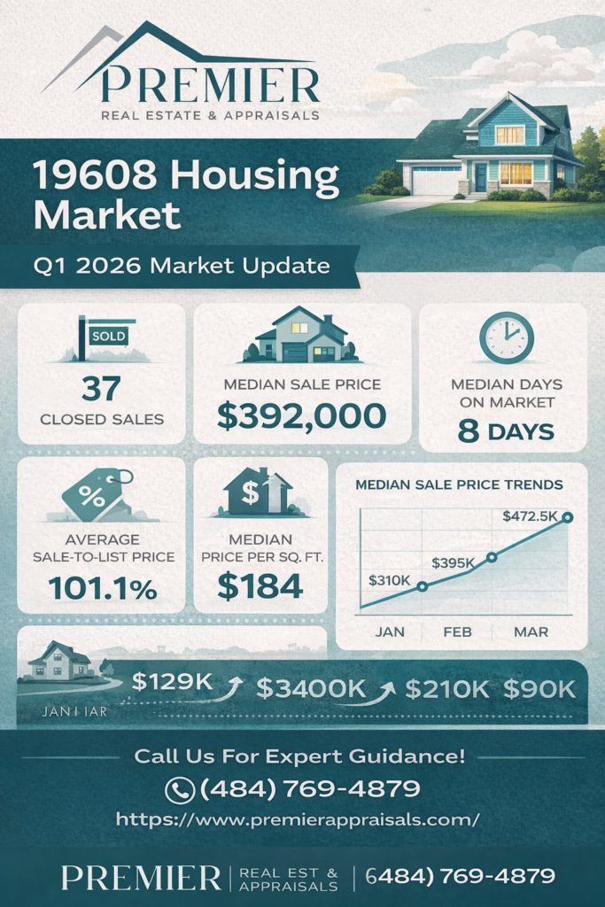 The housing market in 19608 (Sinking Spring area) showed strong momentum to start 2026. If you’re a homeowner, buyer, or